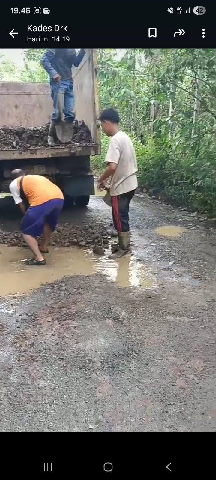 Kegiatan penimbunan jalan ini dilakukan dengan menggunakan material tanah dan batu yang disiapkan khusus untuk menambal bagian-bagian jalan yang rusak, berlubang, atau mengalami penurunan permukaan. Pengerjaan ini dilakukan dengan melibatkan tenaga kerja dari masyarakat setempat, sehingga selain memperbaiki jalan, juga memberikan dampak ekonomi bagi warga yang terlibat dalam kegiatan tersebut.